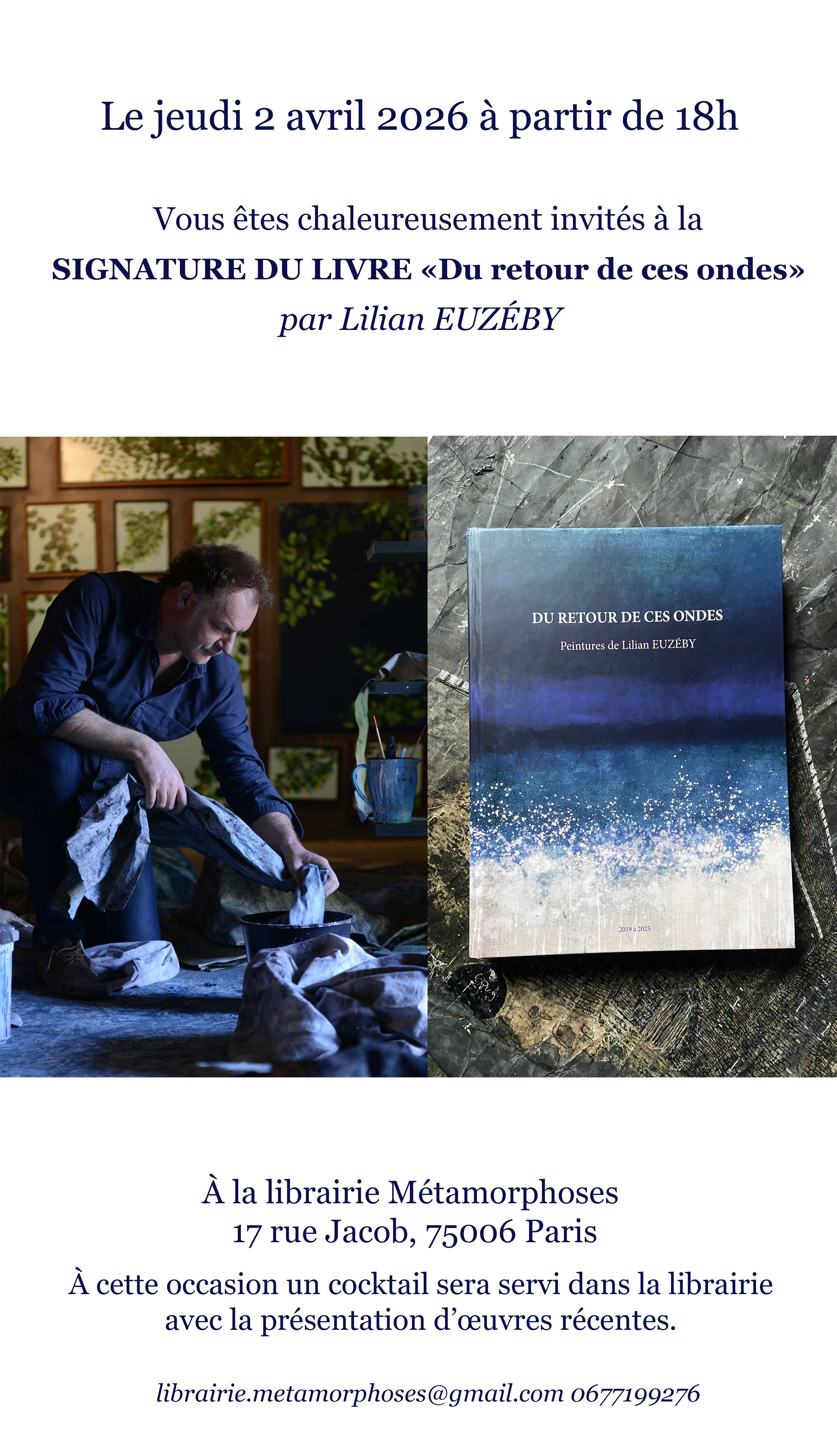 Le jeudi 2 avril 2026 à Partir de 18h00, exposition et signature du livre à la Librairie Métamorphoses au 17 de la rue Jacob, Paris.
